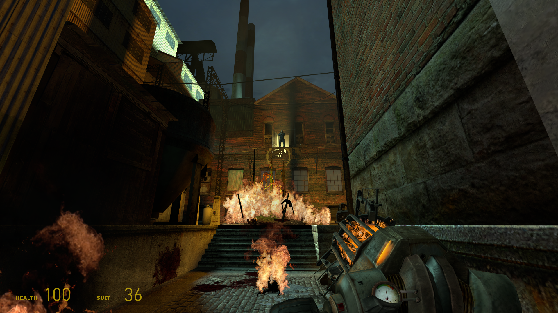 HL2 is a very linear experience. It’s a game of meticulously crafted moments, scenes, and set-pieces, made at a time when the game industry was becoming fixated on open world settings, making non-linear gameplay near ubiquitous in first person shooters. HL2, in appearance, was still indebted to the era from whence its progenitor came. Some saw that as a weakness, but that seems to me a preference thing rather than a decent critical perspective. The point is, anachronistic or not, HL2 was an on-the-rails shooter with a succession of scripted sequences. You moved from A to B along a predetermined path, and other than the manner in which you chose to engage each sequence, you didn’t have much, if any, freedom to roam or pick alternate routes.