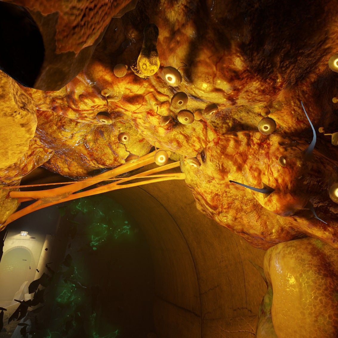 I dunked on the opening settings a bit, but only because their longevity induced fatigue. As environments, they’re absolutely stunning. I was initially lukewarm on the Xenian aesthetics showcased in the trailer as they seemed to be of a drab brown (yeah, yeah, they were various shades of brown in Half-Life, but it’s not 1998 anymore). I needn’t have feared. The Xenian fungus comes in all sorts of shapes, varieties, and colours, and its inclusion makes City 17 feel new again. The often bio-luminescent fungus pulsates, releases spores, and shrinks at your touch. It’d look good in any game, but VR takes it to the next level. It’s so gelatinous, and you can practically feel it.