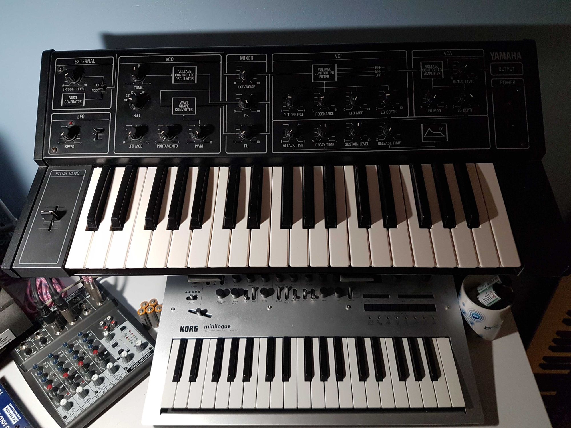 As mentioned, I had collected a lot more hardware since Vol I, and I was keen to use it. One of most important bits, even though it didn't (and still doesn't) make a sound, was my Kenton Pro Solo MkII Midi-to-CV converter (there's a plug for you). It allowed me to better integrate my Yamaha CS5 into my workflow and it is that synth that you hear all over the tracks in Vol II (the arpeggio in "Kempinski Stares into the Abyss", the pad and lead in "The Scientist and the Artist" etc., which by the way is my favourite track on Vol II). I love that synth and its sound fitted so well that I couldn't resist using it to add to all the initial ideas I had jotted down, mainly on the piano to start with.