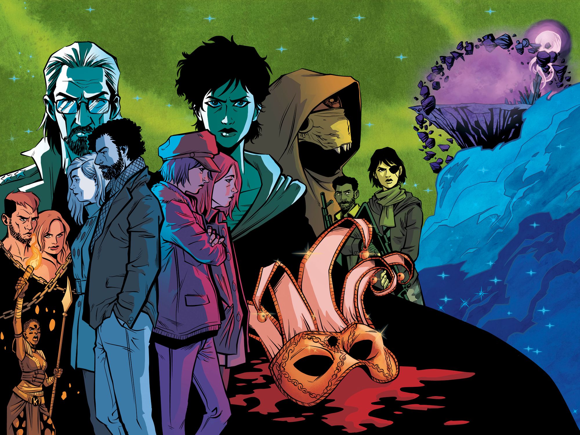 Vol II, I feel, had a lot more "musical" content in it. Still dark / brooding etc. (as is my way) but the melodic side of the world was starting to show itself. Now the story was firmly rooted in New Franklin, it felt like there was a bit more structure to the world and the characters, and I wanted to reflect this in the music. The comic, and its creators, had also grown in confidence as it had been well received – another ingredient to add in.