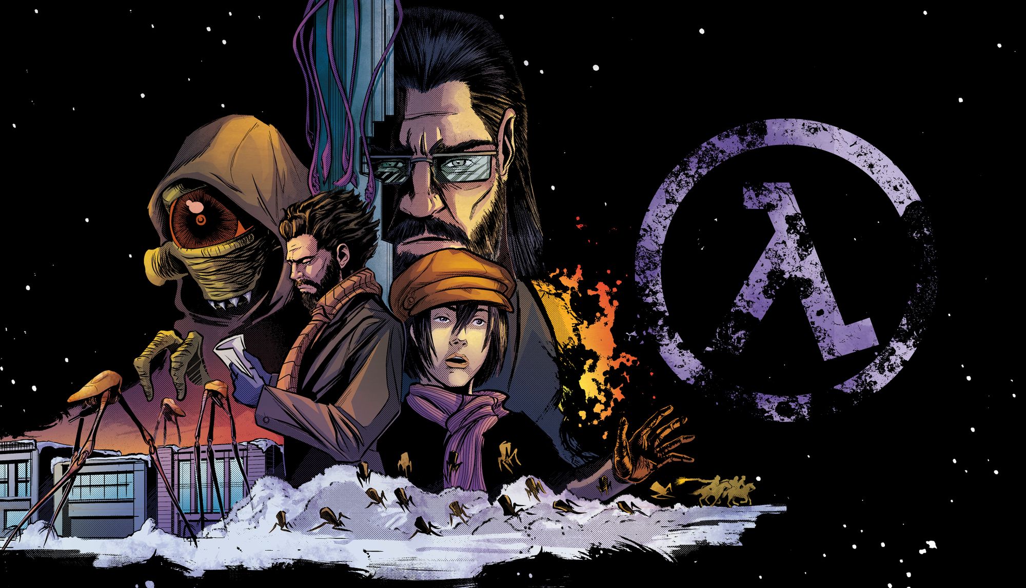 I've been very pleased with the reception the soundtrack has had thus far – you've all been most kind. I'd love for it to continue to grow into a Vol III (wink and nudge in the ribs to Moss – keep cranking out those chapters) and take a deeper look at the characters and themes I feel that the previous two volumes have only lightly touched upon thus far. One character I'd really like to explore further is the city of New Franklin itself...seemingly a gleaming bastion of hope when we first clap eyes on it, by the end of Chapter 6 it's caught a bad case of the "Black Mesa's" (if you catch my drift). Exploring the city musically, as one would navigate its twisted streets, sounds like a journey I'd like to take, and I invite you, you intrepid comic book connoisseur (and hardcore blog reader, assuming you've managed to make it to this point without your eyes bleeding) to come along with me...just mind out for the headcrabs.